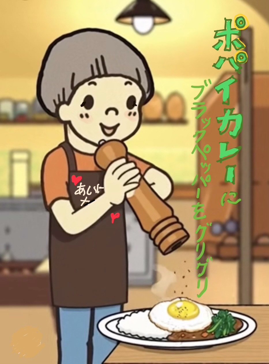 (木)ポパイカレーは目玉焼きとほうれん草が乗ったカレー!ブラックペッパーをグリグリとたくさんかけます!