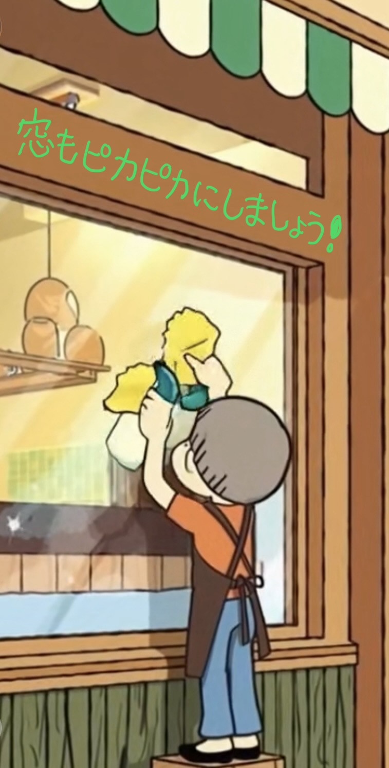 4月5日(日)お店のお手伝い!窓もピカピカに拭きましょうね〜!