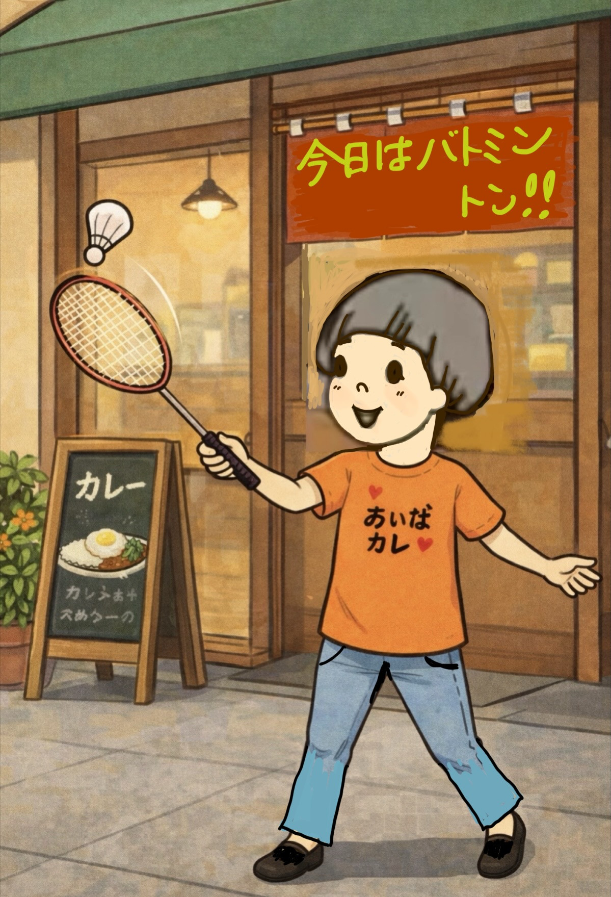 4月12日(日)今日はいいお天気〜お店の前でバトミントン!!